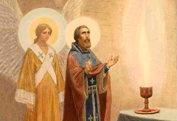 Ένας άγγελος συλλειτουργεί με τον όσιο Σέργιο