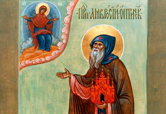 Ο όσιος πατήρ ημών Αμβρόσιος, η πλέον αξιοσημείωτη μορφή της πλειάδος των στάρετς (Γερόντων) της Μονής της Όπτινα, γεννήθηκε το 1812. Παιδί ζωηρό και προικισμένο με εξαιρετική ευφυΐα, διδάχθηκε τα ιερά γράμματα κατ’ αρχήν από τον παππού του, που ήταν ο εφημέριος του χωριού, και αργότερα έκανε λαμπρές δευτεροβάθμιες σπουδές στην ιερατική σχολή του Ταμπώφ, όπως συνηθιζόταν τότε, χωρίς ωστόσο να έχει πρόθεση να χειροτονηθεί ιερέας ή να καρεί μοναχός.