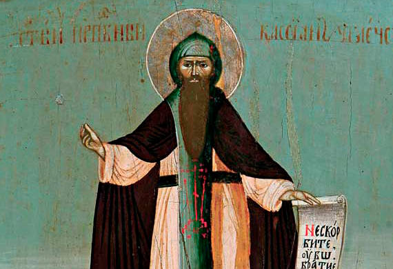Συγγενής του τελευταίου αυτοκράτορα του Βυζαντίου, του Κωνσταντίνου ΙΑ’ Παλαιολόγου (1449-1453), ο όσιος Κασσιανός, του οποίου το κατά κόσμον όνομα ήταν Κωνσταντίνος, έφθασε στη Ρωσία το 1473 με τη συνοδεία της βασιλόπαιδος Σοφίας Παλαιολογίνας, που πήγε εκεί για να παντρευθεί τον ηγεμόνα Ιβάν Γ’ Βασίλιεβιτς. Ενώ στα άλλα μέλη της συνοδείας αποδόθηκαν τίτλοι και υψηλά αξιώματα στη ρωσική αυλή, ο Κωνσταντίνος αρκέσθηκε στον τίτλο του βογιάρου δίπλα στον αρχιεπίσκοπο Ιωάσαφ του Ροστώφ.