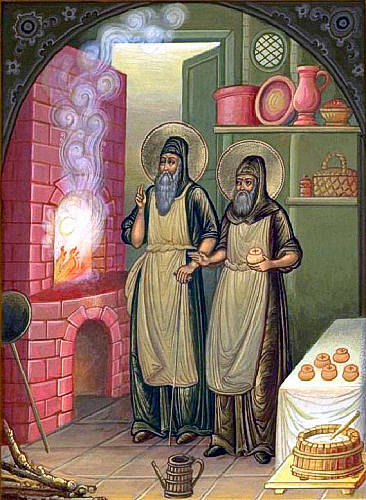 Οι δύο όσιοι, αφού διακόνησαν θεοφιλώς το μοναστήρι τους τριάντα χρόνια σαν προσφοράρηδες, εκοιμήθησαν ειρηνικά εν Κυρίω σε βαθύ γήρας, και πήγαν να συναντήσουν τον ποθούμενο Ιησού, τον Άρτο της Ζωής, «τον εσθιόμενον και μηδέποτε δαπανώμενον».