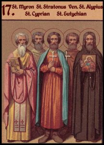 Τῷ αὐτῷ μηνὶ ΙΖ΄, μνήμη τοῦ Ἁγίου Μάρτυρος Μύρωνος.